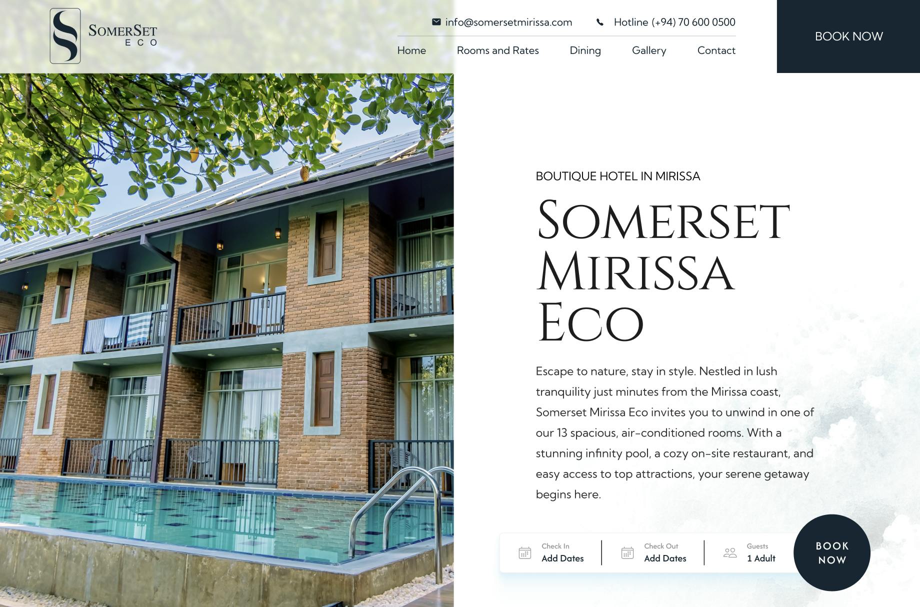 A responsive website built for a boutique hotel, crafted to present facilities, local attractions, and simplified booking options.